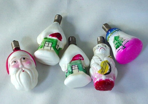 5 Vintage Figural Milk Glass Christmas Light Bulbs