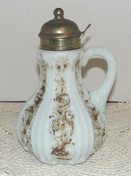 Victorian Milk Glass Rib & Scroll Syrup Pitcher NR