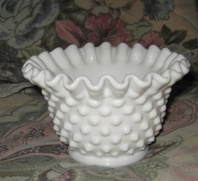VINTAGE FENTON MILK GLASS HOBNAIL MAYONNAISE BOWL