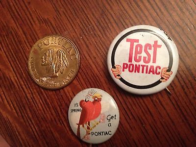 Pontiac 2 pinbacks 1 brass coin General Motors automobile car antique