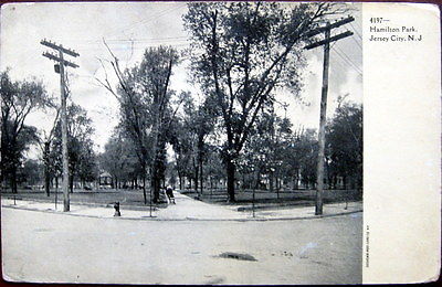 Title (ebay affiliate link): JERSEY CITY, NJ: View Looking Into Hamilton Park from Street ca1910