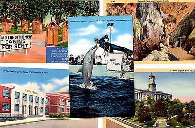 Lot Of 50 Vintage USA Linen Postcards ~ People ~ Towns ~ Famous sites More