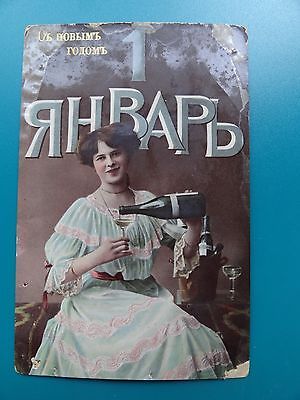 OLD pre- 1917 RUSSIAN GREETING NEW YEAR POSTCARD /LADY CHAMPAGNE /STAMPED
