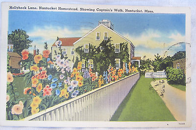 Title (ebay affiliate link): Vintage Postcard - Hollyhock Lane, Nantucket Homestead, Showing Captain's Walk