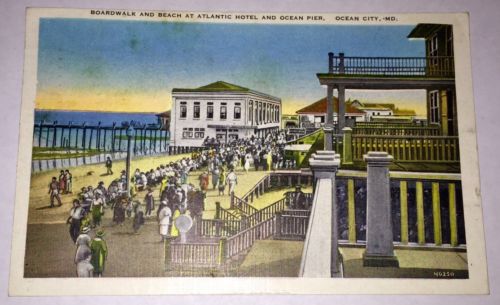 Title (ebay affiliate link): 1938 Boardwalk and Beach at Atlantic Hotel and Ocean Pier Ocean City MD Postcard