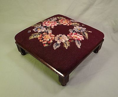 Antique Small Needlepoint Bench Foot Stool Footstool