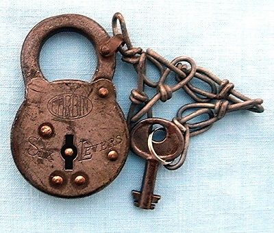 Title (ebay affiliate link): Early Corbin Six lever lock , key on chain great for an old chest