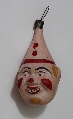 VINTAGE GLASS CHRISTMAS ORNAMENT CLOWN'S HEAD