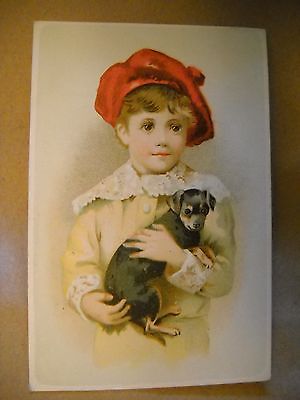 Title (ebay affiliate link): VOSE PIANO Victorian TRADE CARD CHROMOLITHO boy holds dog SYRACUSE NY