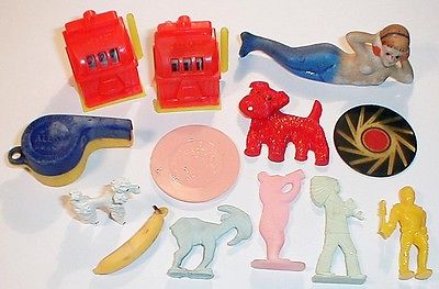 Vintage Toy Lot Cracker Jack Nosco Old Bisque Mermaid Small Steel Dog Etc