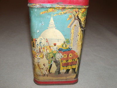 VINTAGE THOMAS LIPTON TEA TIN WITH LID,INDIA GRAPHICS,CANADA, 1940