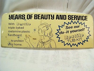 Title (ebay affiliate link): Vintage Metal Sign for Bestile Tub Kit Melamine Plastic Hardboard 1950's