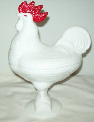Milk Glass Rooster Candy Dish - possible Westmoreland