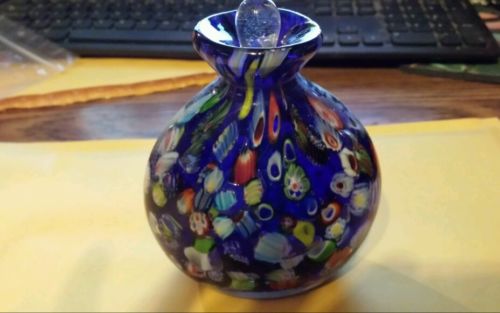 BEAUTIFUL BLUE BLOWN GLASS DECANTER WITH STOPPER