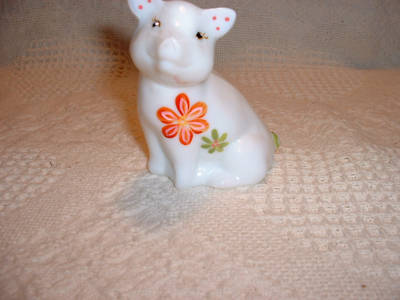 FENTON MILK GLASS HP "FLOWER POWER" PIG 2007