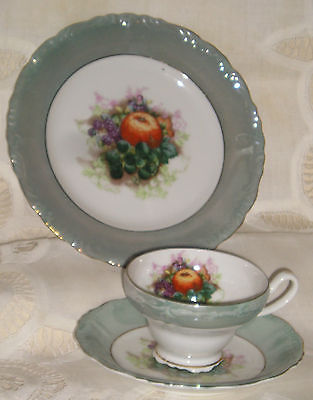 Vintage L M Royal Halsey 3 Piece Luncheon Set ~ Green Lustreware ~