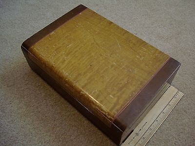 VINTAGE Wood Hinged Box tongue & groove inside etched mirror 4x12x8