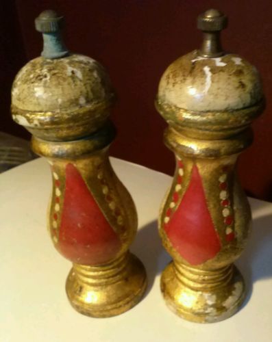 VINTAGE ITALIAN FLORENTINE TOLE GILT WOOD SALT & PEPPER SHAKERS