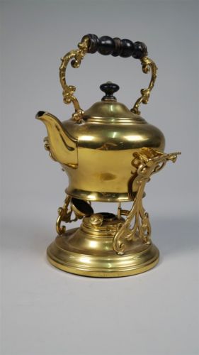 Title (ebay affiliate link): Rare Brass Plated Rococo Style Tilting Teapot on Stand With Burner Wood Handles