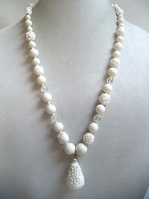 STUNNING VINTAGE ESTATE SIGNED JAPAN TEXTURED MILK GLASS BEADED NECKLACE!! 4789X
