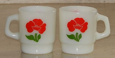 Title (ebay affiliate link): Vtg Lot 2 White Milk Glass Fire King Anchor Hocking Foxy Red Poppy Flower Mugs