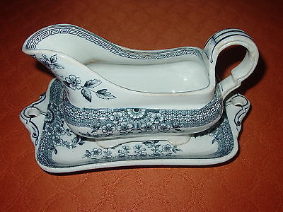 Foley Staffordshire Blue Transferware Gravy Boat and Tray