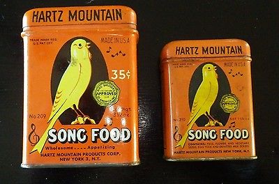 Title (ebay affiliate link): 2 Vintage Hartz Mountain Song Food Advertising Bird Seed Tin