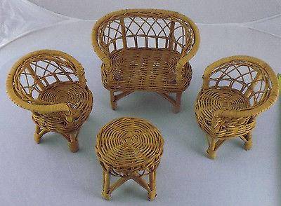 VINTAGE WICKER 4-PC DOLL FURNITURE PORCH SET