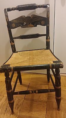 Vintage Ethan Allen Hitchcock Chair black with eagle back rush seat