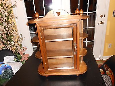 Vtg Wall Hanging Curio Cabinet Shelf Table Top Door Wood Display Case Topper