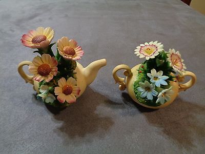 Title (ebay affiliate link): PAIR OF ITALIAN CAPODIMONTE PORCELAIN TEAPOT/SUGAR POT VASES W/FLOWERS