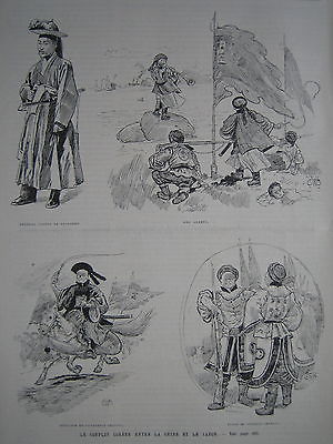 OLD PRINT ENGRAVING 1894 CHINA COREA KOREA WAR KOREAN ARMY GENERAL FLAG