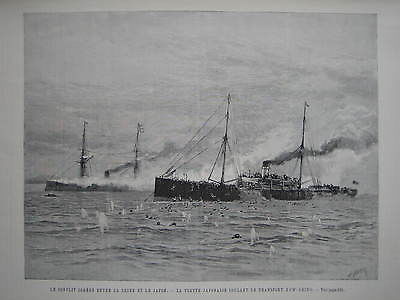 OLD PRINT ENGRAVING 1894 WAR OF CHINA COREA KOREA JAPAN KOW-SHING SAPEUR POMPIER