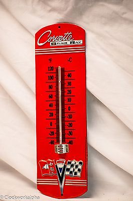 CORVETTE STING RAY Metal THERMOMETER Advertising CHEVY Wall Sign Garage Man Cave