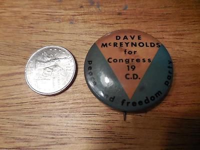 ORIGINAL 1968 DAVE MCREYNOLDS FOR CONGRESS PEACE AND FREEDOM PARTY PIN 19 CD