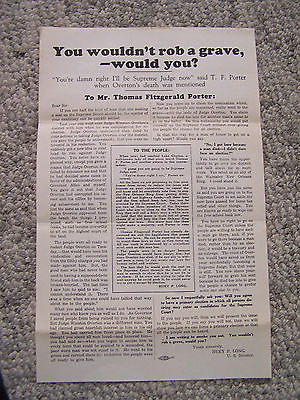 Vintage 1934 Huey P. Long Handout on Judge Thomas Porter US Senator Louisiana