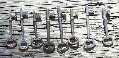 8 OLD ANTIQUE SKELETON KEYS FURNITURE CABINET DOOR LOCK KEYS