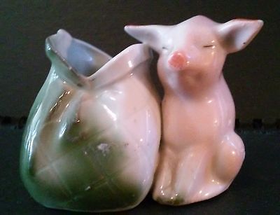 Vintage Pink Pig with Purse trinket holder German Fairing Figurine