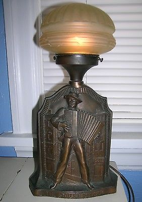Antique Vintage THE STREET SINGER Bronze Metal Spelter Table Lamp Art Deco Globe