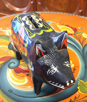 Antique Vintage Scandinavian Wood Pig Bank