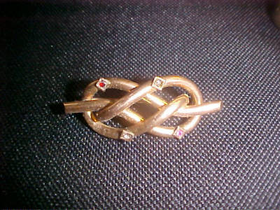 ANTIQUE GOLD FILLED KNOT BROACH W/ 4 STONES
