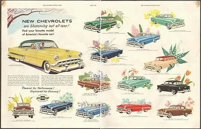 1954 Chevrolet Automobile ad yellow Bel Air Sport Coupe green Townsman +13 model