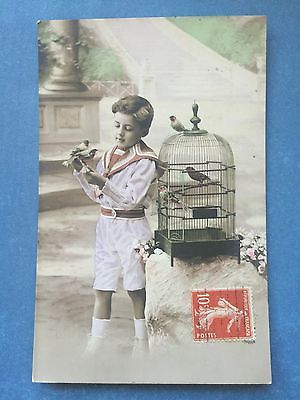 Title (ebay affiliate link): Cute Boy w/ birds Glamour RPPC Vintage Postcard France