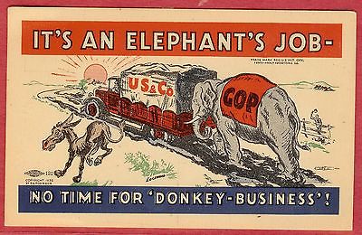 VINTAGE POSTCARD GOP CARD " NO DONKEY BUSINESS"