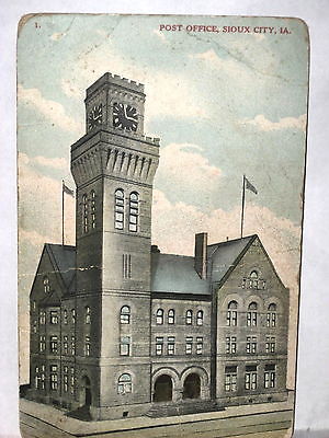 1908 POSTCARD POST OFFICE SIOUX CITY IA