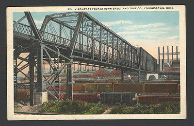 Title (ebay affiliate link): Postcard Viaduct at Youngstown Sheet & Tube Co. Ohio Railroad Yard Box Cars