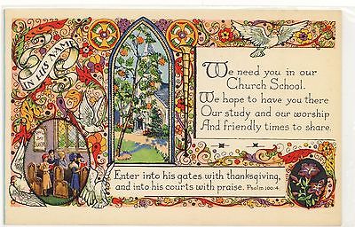 Antique, vintage postcard, Invite to Sunday School, No. 683, made in U.S.A.