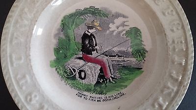 Antique Victorian Child Alphabet ABC Plate Transfer Ware Boy Bait Fishing Line