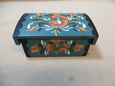 COLORFUL NORWIGIAN HAND PAINTED FOLK ART STYLE LIFT TOP TRINKET BOX