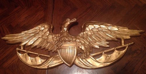 25" Gold Wooden Federal Patriotic Bald Eagle With Flag & Shield